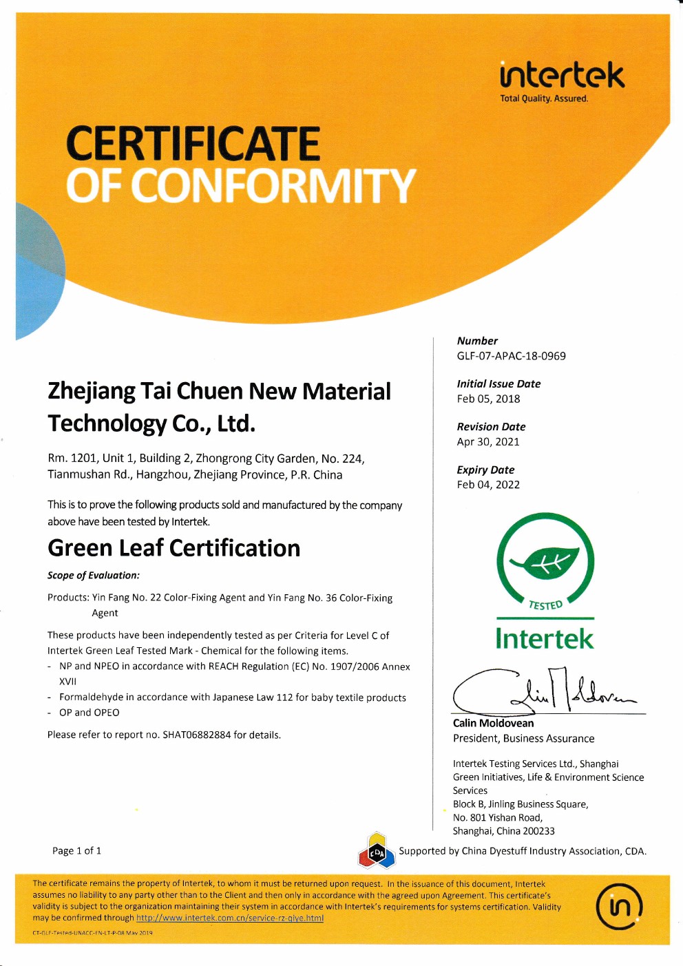 Some of the company's related products have Intertek green certificate.