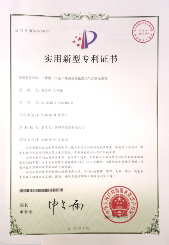 • 實用-一種聚二甲基二烯丙基氯化銨尾氣光氧化裝置